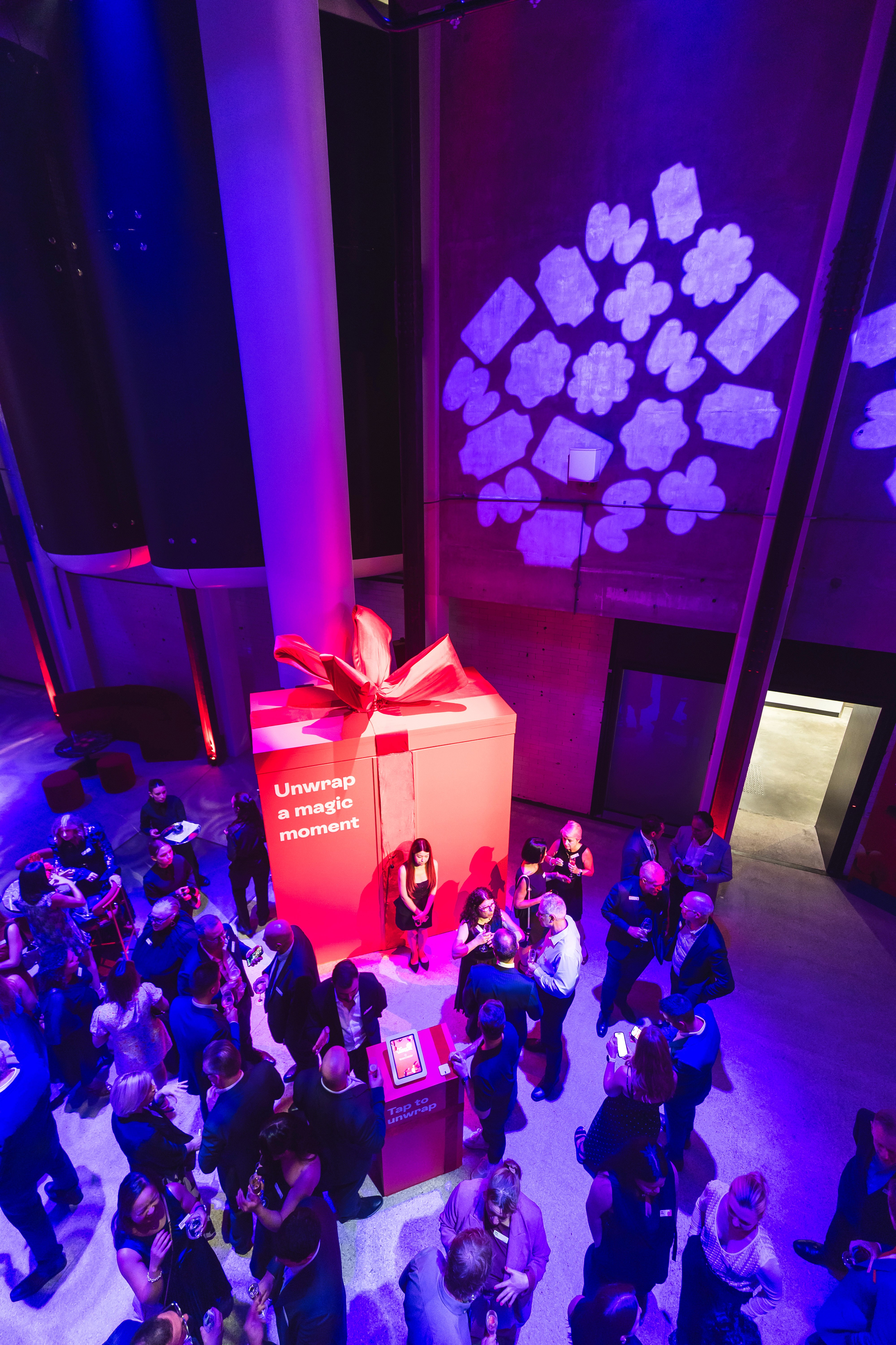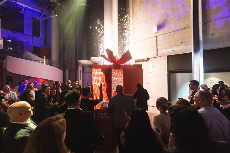 Not just a launch party, this event got media and high value customers hands-on with the product. A giant gift in the centre of the space was digitally connected to a prototype payment system, and with each tap of a phone, the tension built to see who would be the one to open it and win. The venue was entirely taken over with Prezzee branding, transforming at the moment of the launch on-stage to match the new Prezzee Pay product band.